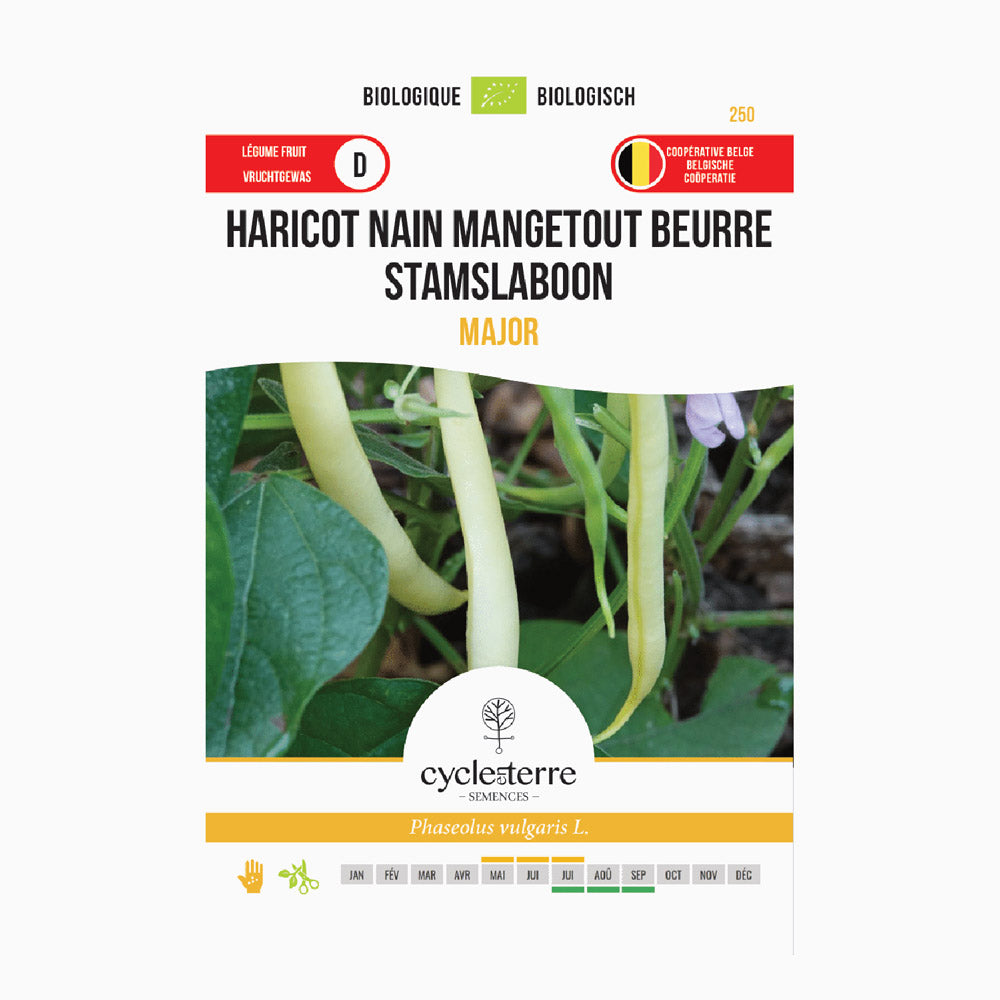 Le haricot vert ‘Beurre Major’ est un haricot à gousses jaunes, connu pour ses gousses droites et fines qui atteignent 15 à 17 cm de long. Ce haricot présente d’excellentes caractéristiques : il est particulièrement résistant aux maladies et offre un rendement élevé.