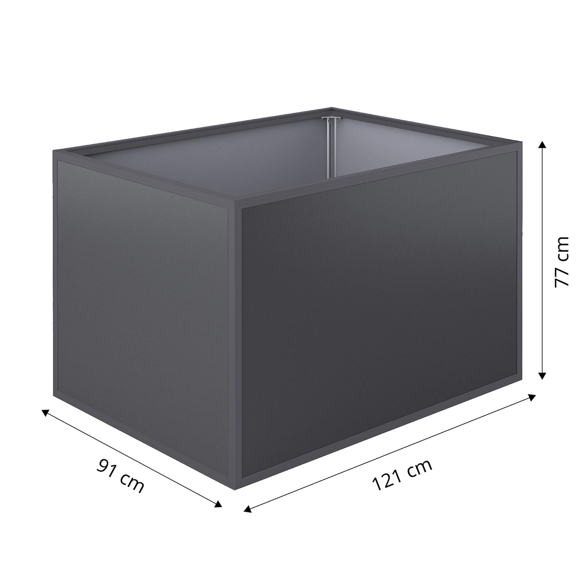 Le bac est fabriqué en acier galvanisé durable et thermolaqué, ce qui le rend résistant à toutes les conditions météorologiques et lui assure une longue durée de vie. Avec des dimensions d’env. 130 x 65 x 78 cm, ce raised bed offre un bon équilibre entre compacité et capacité. La construction robuste garantit une excellente stabilité, même lorsque le bac est entièrement rempli.