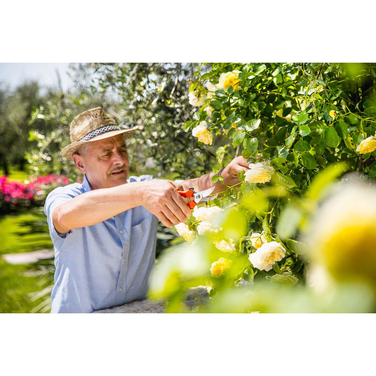 Un sécateur de jardin pratique en acier inoxydable avec lames courbées. Idéal pour une utilisation polyvalente au jardin et au potager.