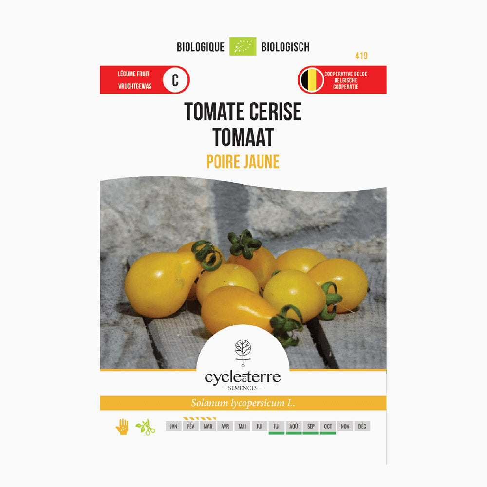 Les petites tomates jaunes en forme de poire peuvent être récoltées lorsqu’elles sont bien mûres et d’un jaune vif. Cueillez-les délicatement afin de ne pas abîmer la plante. Elles sont délicieusement sucrées et juteuses, et peuvent se manger directement à la main. Utilisez-les dans des salades colorées, en décoration sur des planches de tapas, ou grillées avec un peu d’huile d’olive et des herbes.