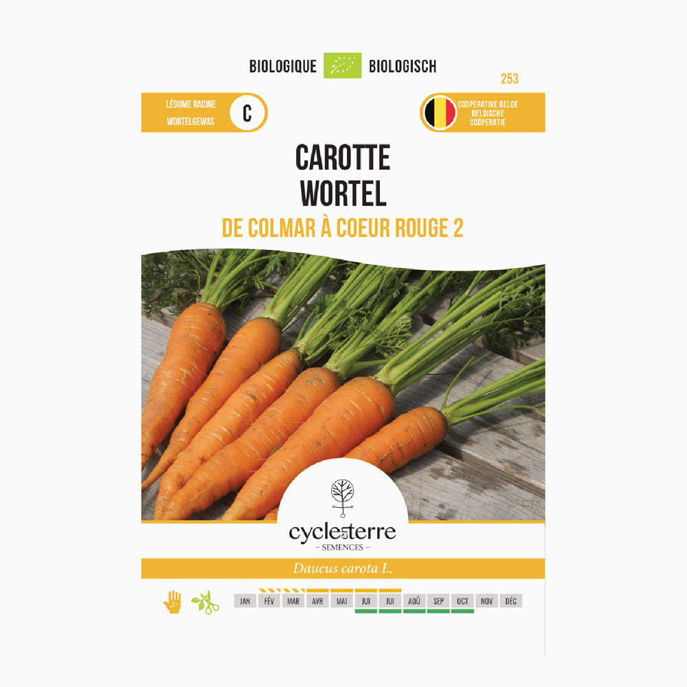Cette carotte peut être semée directement en pleine terre d’avril à juillet. Pour un démarrage précoce, vous pouvez semer à partir de la mi-février sous une protection ou dans une serre. Semez les graines à 1 cm de profondeur en rangs espacés de 20 à 30 cm. Dès la levée des plantules, vous pouvez éclaircir pour obtenir un espacement de 5 cm entre les plants, afin que les racines aient suffisamment de place pour devenir grandes et fermes. Colmar se développe au mieux dans un sol ensoleillé, bien ameubli. Un arrosage et une fertilisation réguliers aident les racines à pousser de façon homogène. Après 140 à 150 jours, les racines sont prêtes à être récoltées.