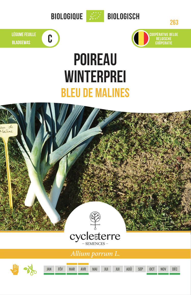 Les plants sont généralement semés en mars ou avril, puis peuvent être repiqués au début de l’été. Pendant la croissance, il est utile de butter légèrement le fût afin qu’il reste bien blanc et tendre. Bleu de Malines a été sélectionné pour résister à un froid soutenu, ce qui permet une récolte de la fin de l’automne jusqu’au cœur de l’hiver. Un poireau est prêt à être récolté lorsque le fût a atteint un beau diamètre et qu’il est ferme au toucher. Arrachez de préférence par temps sec, afin que le poireau reste propre et se conserve longtemps.