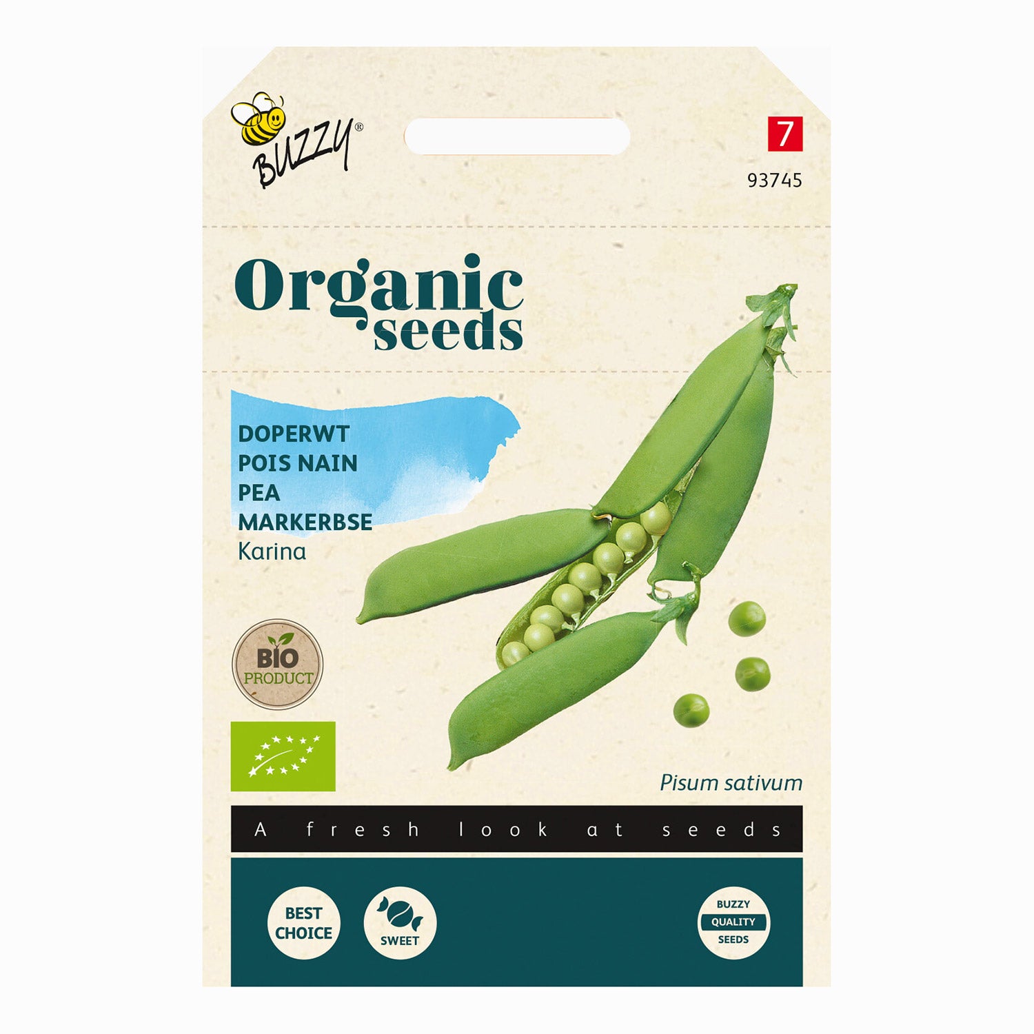 Le pois à écosser Karina est une variété saine et peut donner une énorme récolte de gousses contenant environ 9 à 10 pois. Il atteint une hauteur d’environ 110cm. Un support est nécessaire ; veillez à le construire solidement, car surtout au début du printemps, il peut attraper pas mal de vent.