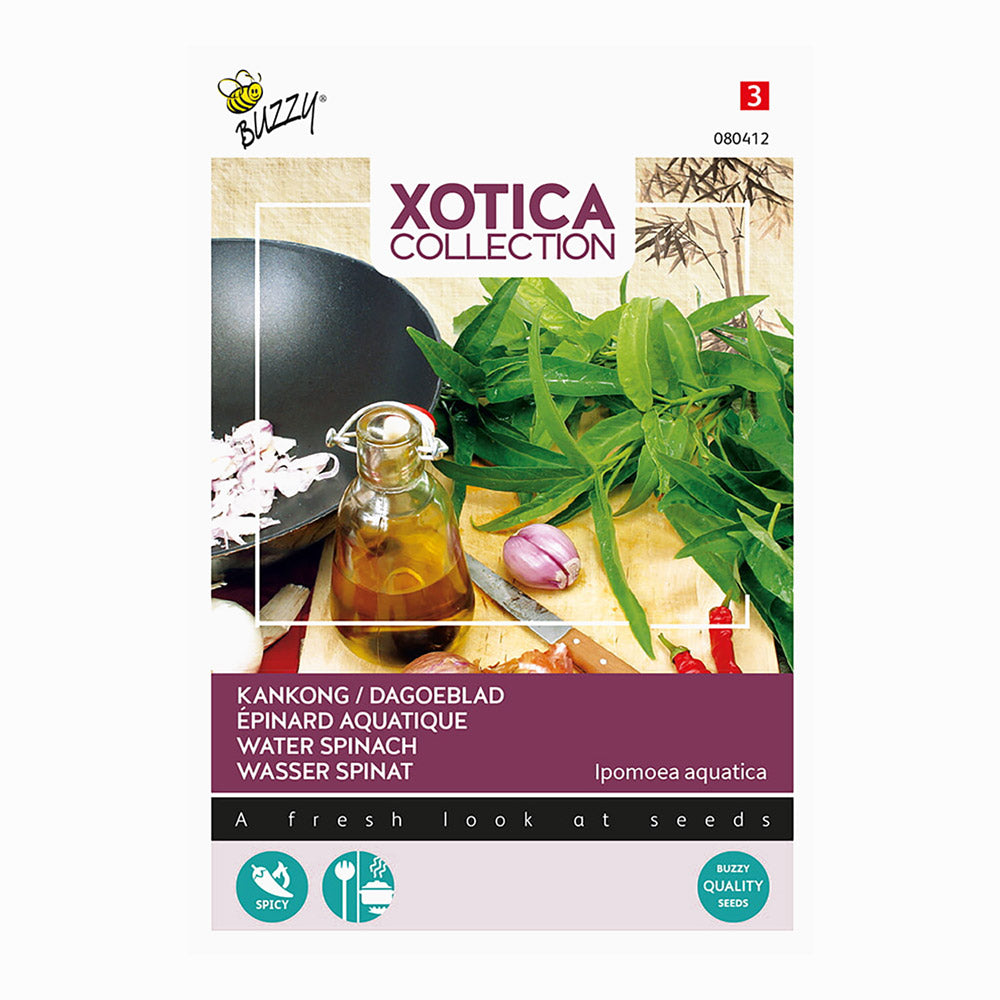 Le kangkong peut être récolté de juin à septembre. Coupez soigneusement les feuilles et les jeunes tiges afin de permettre à la plante de continuer à pousser. Ce légume est idéal pour un rapide sauté au wok avec de l’ail, de la sauce soja et un peu de piment, pour un accompagnement asiatique authentique. Les feuilles tendres et les tiges croquantes conviennent également très bien dans une soupe ou un plat de nouilles. Avec sa saveur riche et sa grande polyvalence, le kangkong apporte une touche tropicale à votre cuisine.