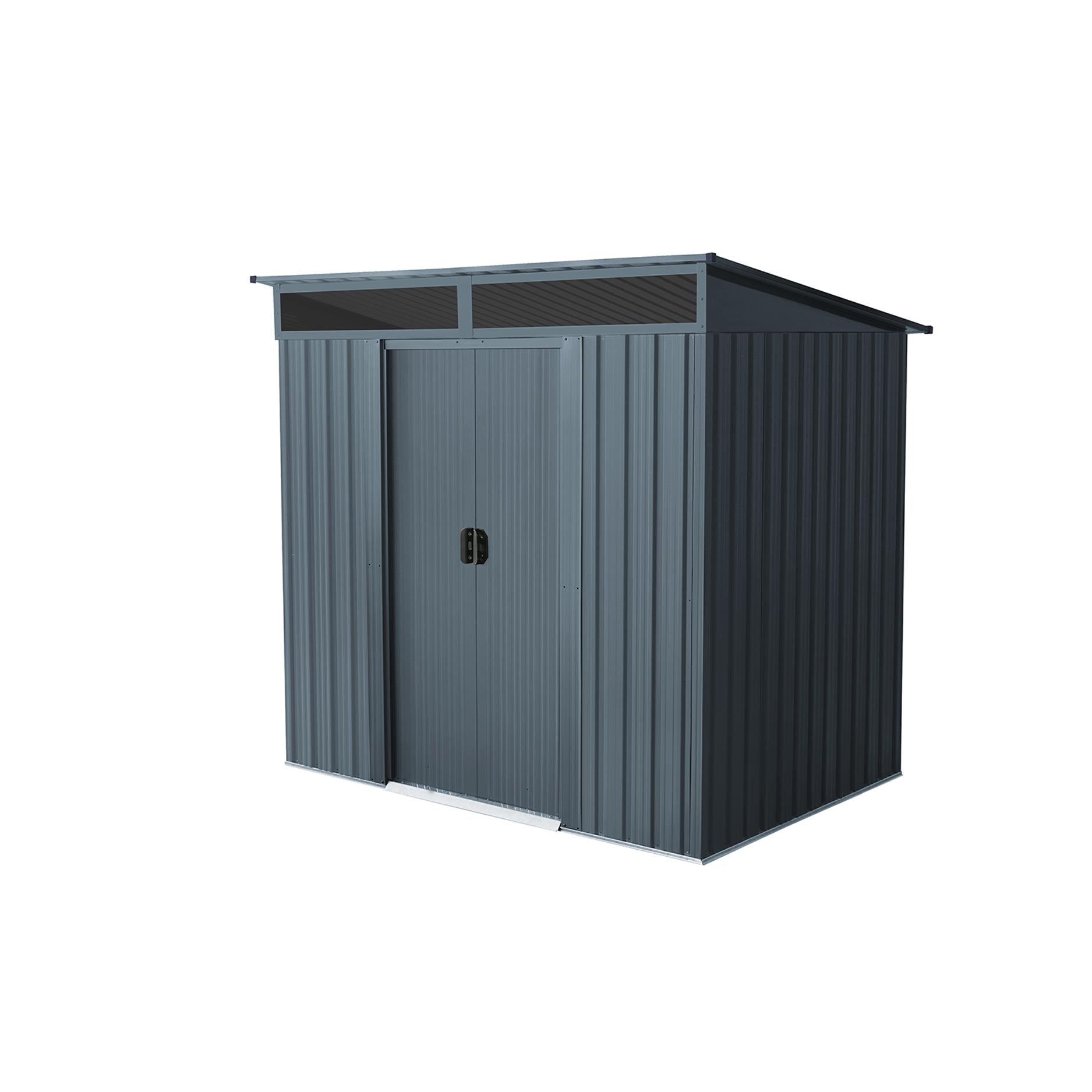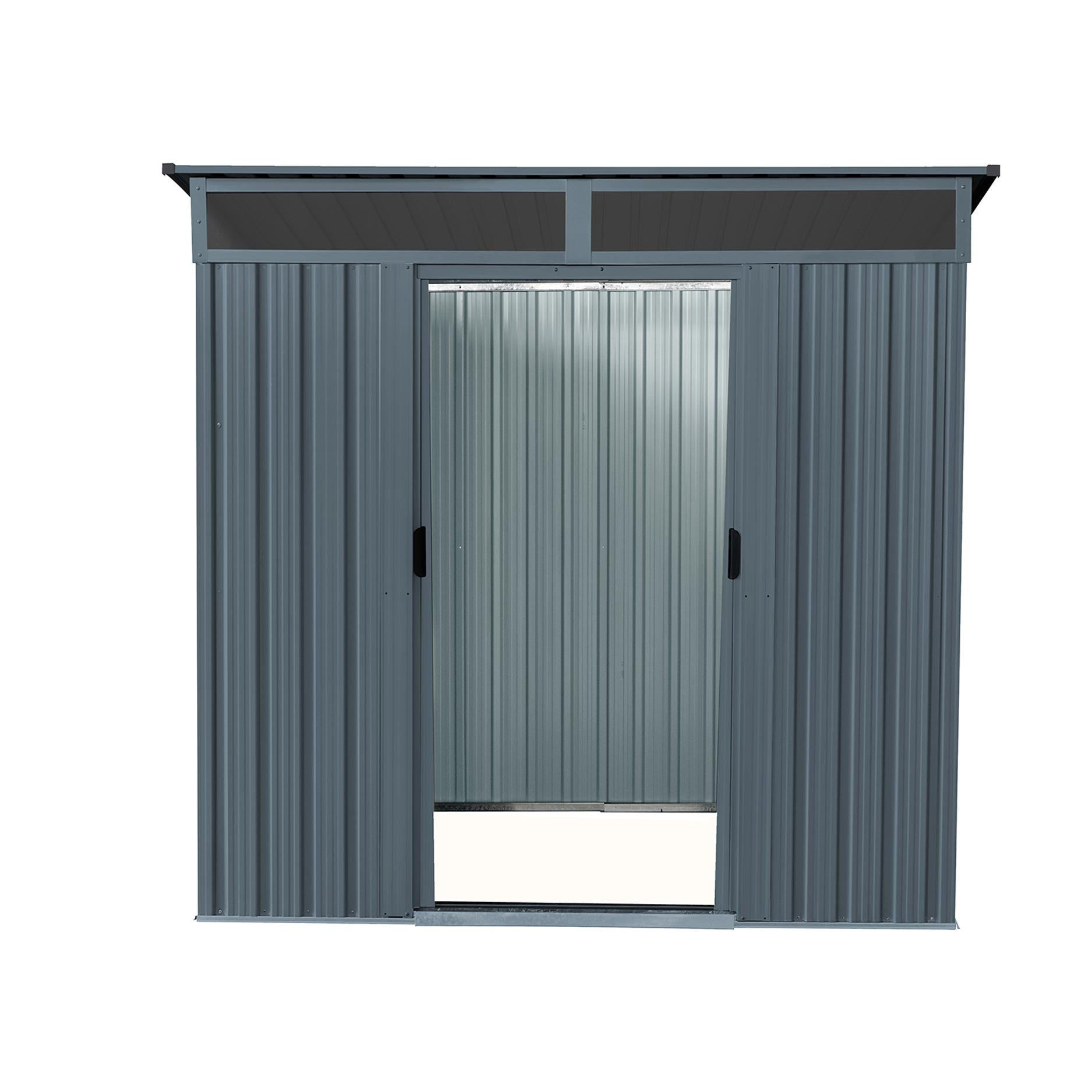 La bande de vitrage au-dessus des doubles portes coulissantes apporte davantage de lumière naturelle. Vous disposez d’un petit espace où une porte battante n’est pas envisageable ? Les doubles portes coulissantes ne nécessitent aucun dégagement pour s’ouvrir. Et s’il neige, elles s’ouvrent tout simplement aussi. Le Lüttich 64 offre une surface au sol de 2,35m2 et dispose de deux panneaux sur la façade avant. La partie la plus haute du toit mesure 180cm et la partie la plus basse 158cm.