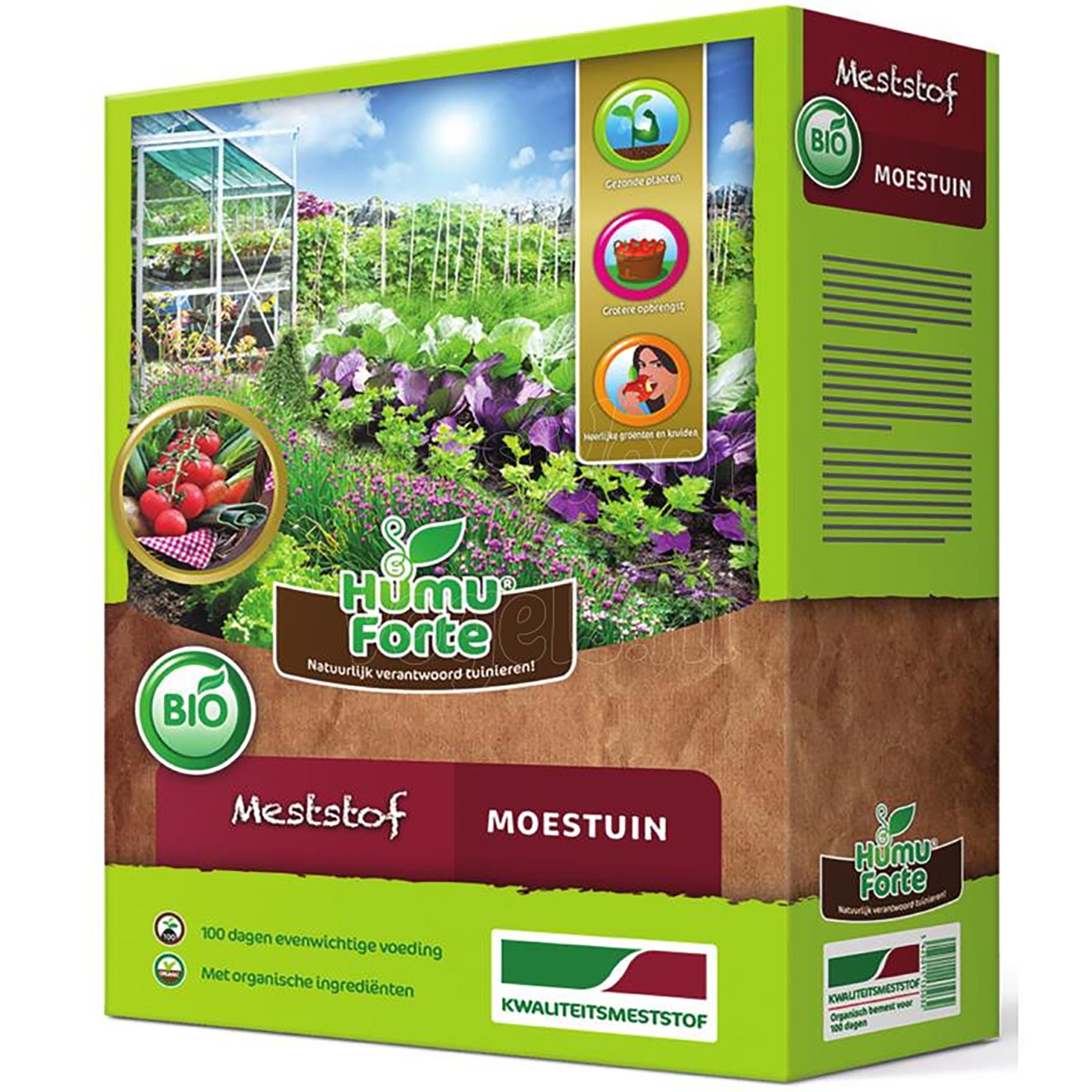 De meststof bevat een uitgebalanceerde mix van organische voedingsstoffen, humuszuren en sporenelementen die geleidelijk vrijkomen in de bodem. Hierdoor worden planten langdurig en gelijkmatig gevoed zonder pieken of tekorten. Humuszuren stimuleren het bodemleven en verbeteren de structuur van de grond, waardoor voedingsstoffen beter worden vastgehouden en opgenomen. Dit resulteert in sterkere wortels, gezonde groei en een hogere opbrengst van groenten en fruit.