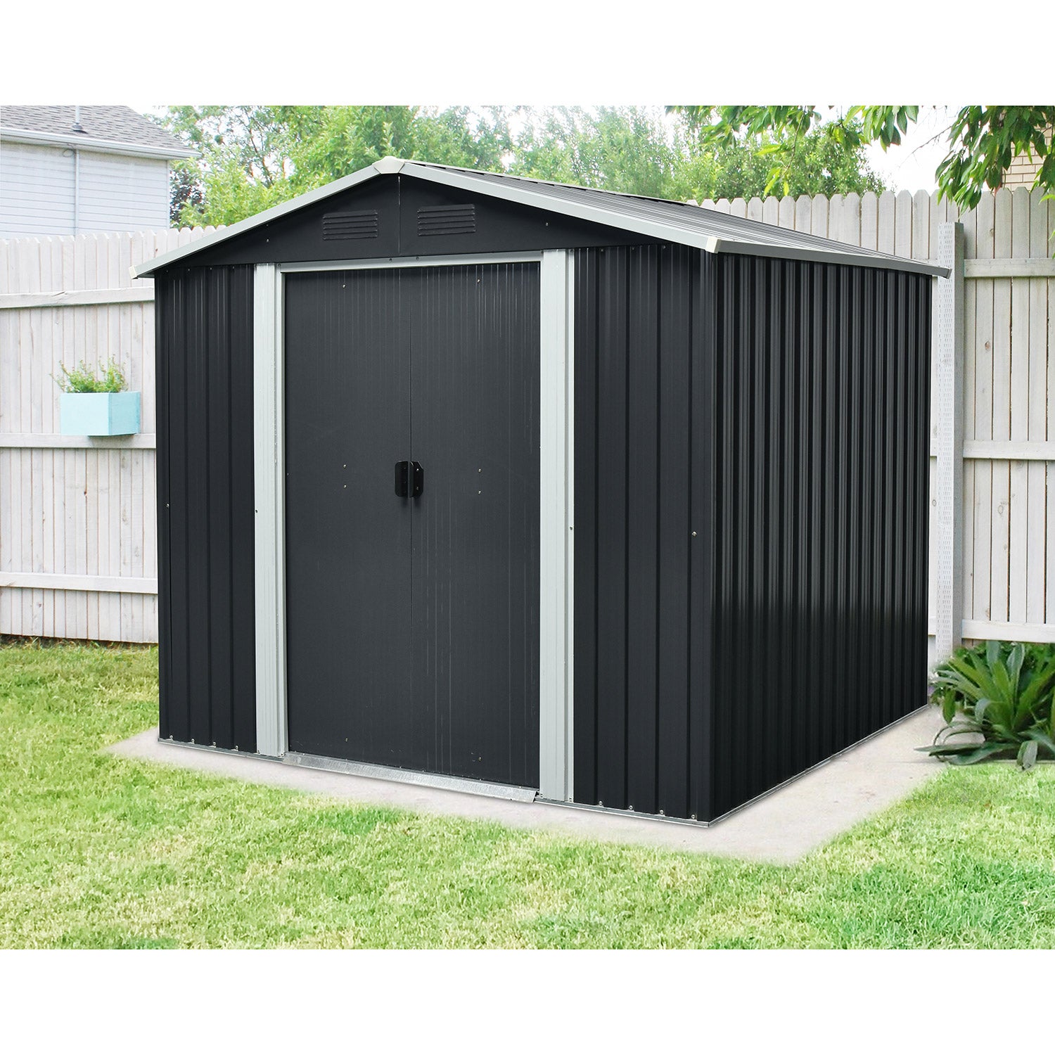 La Dresden II 106 est un abri de jardin métallique robuste de 4,71m2, qui se distingue par sa largeur. Cet abri de jardin mesure 2,91m de large et fait ainsi partie des abris de jardin les plus larges de Pergart. Toutes les parties extérieures sont en acier galvanisé et offrent une excellente protection contre les intempéries. Avec 2 portes coulissantes très généreuses, d’une largeur (totale) de 125cm, vous faites entrer sans effort des brouettes, des vélos ou des motos.