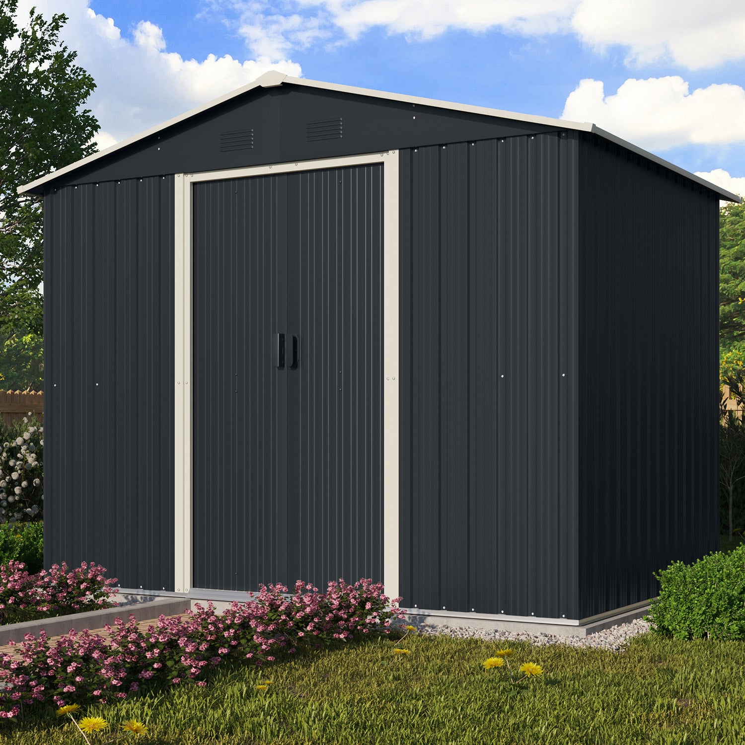 La série Düsseldorf II se compose au total de 3 modèles. Les dimensions varient de 1,80m2 à 3,66m2. Tous les modèles Düsseldorf II sont proposés dans une finition anthracite épurée avec des accents blancs sur toutes les parties extérieures en acier galvanisé. Ces abris conviennent parfaitement à tous les jardiniers à la recherche d’un espace de rangement pratique pour leurs outils de jardinage.
